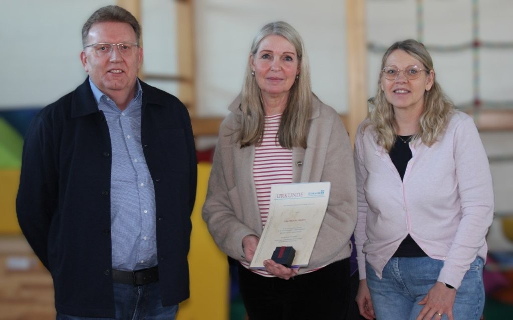 Eine besondere Auszeichnung erhielt Monika von unserem Geschäftsführer: das goldene Kronenkreuz der Diakonie.