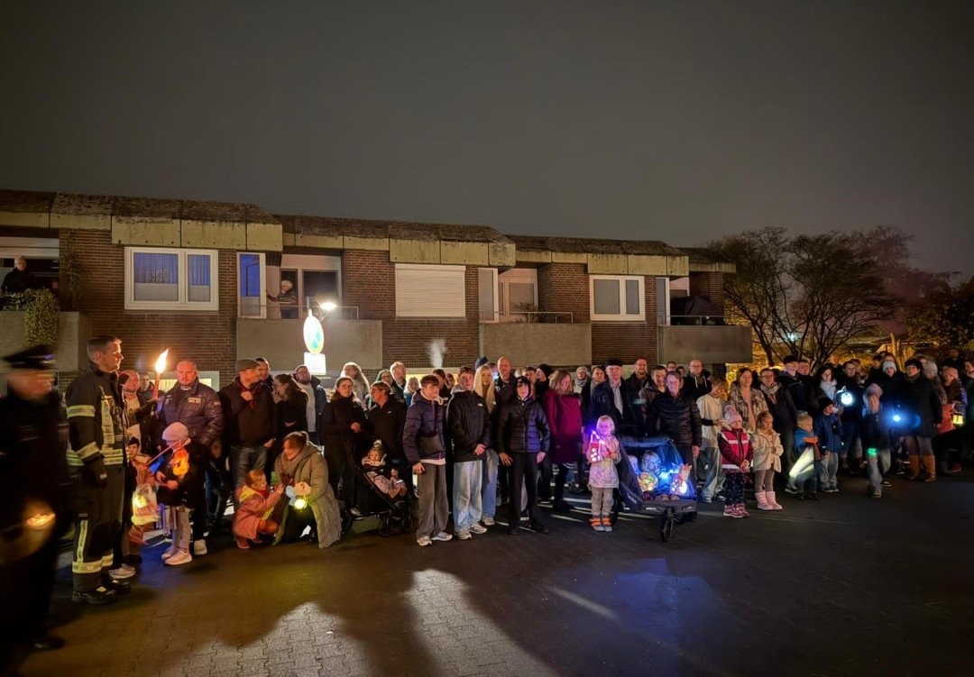 Das Wetter spielte in diesem Jahr wieder mit, so dass zahlreiche Familien zum Gottesdienst kamen und beim Laternenlauf dabei waren. Die Strecke führte uns über einen kleinen Teil des Zeteler Marktes (der sich zum Zeitpunkt noch im Aufbau befand) und endete im Rondell des Sankt-Martin-Heimes. Hier warteten die Bewohner*innen und Mitarbeiter*innen bereits auf ihren Besuch. Dieser konnte sich mit warmen Kakao oder Kinderpunsch aufwärmen und nebenher Martinshörnchen schlemmen.