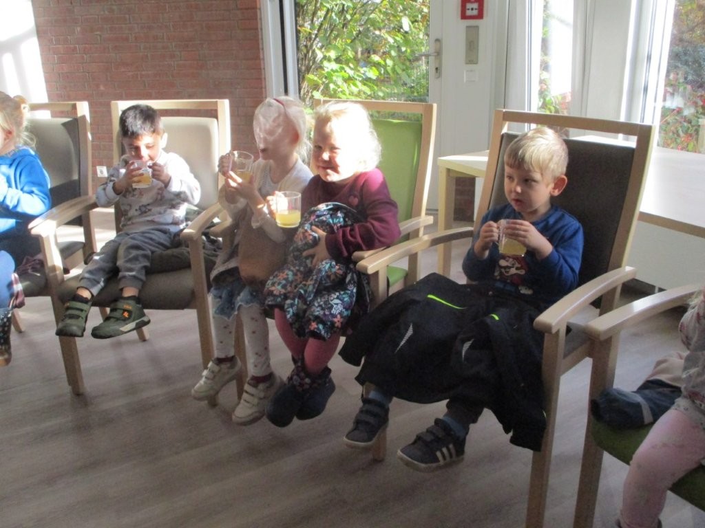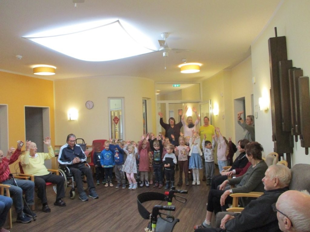 Nach vielen Jahren Pause starteten wir Anfang November wieder die Kooperation zum Sankt-Martins-Heim. Die Regenbogengruppe hatte einige Herbst- und Laternenlieder im Gepäck. Auf verschiedenen Wohnbereichen luden die Kinder und ihre Erzieherinnen die Bewohner*innen zum Mitsingen ein.