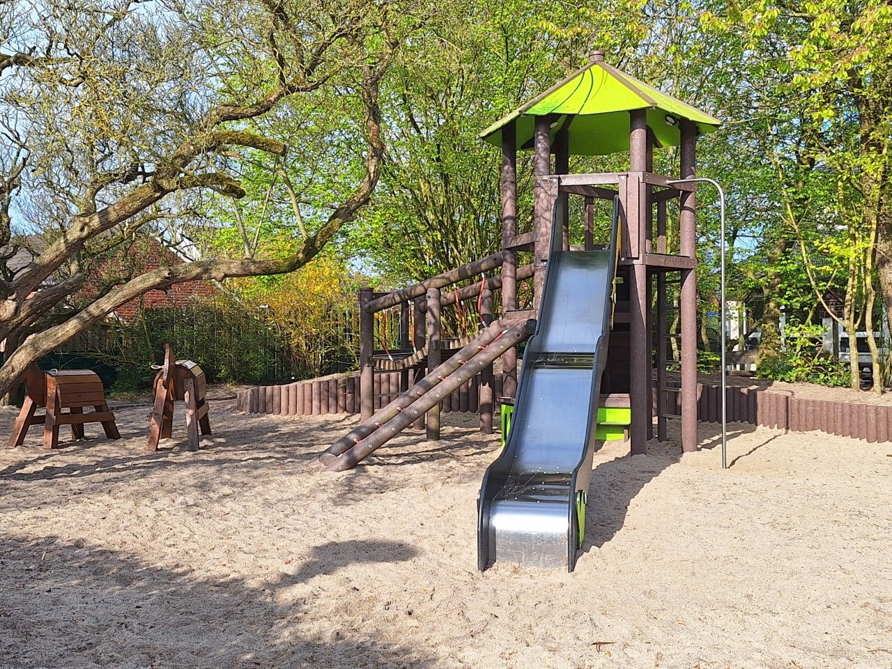 „Rutschturm-Spielplatz“, ist direkt am Kindergarten. Den Kindern stehen hier